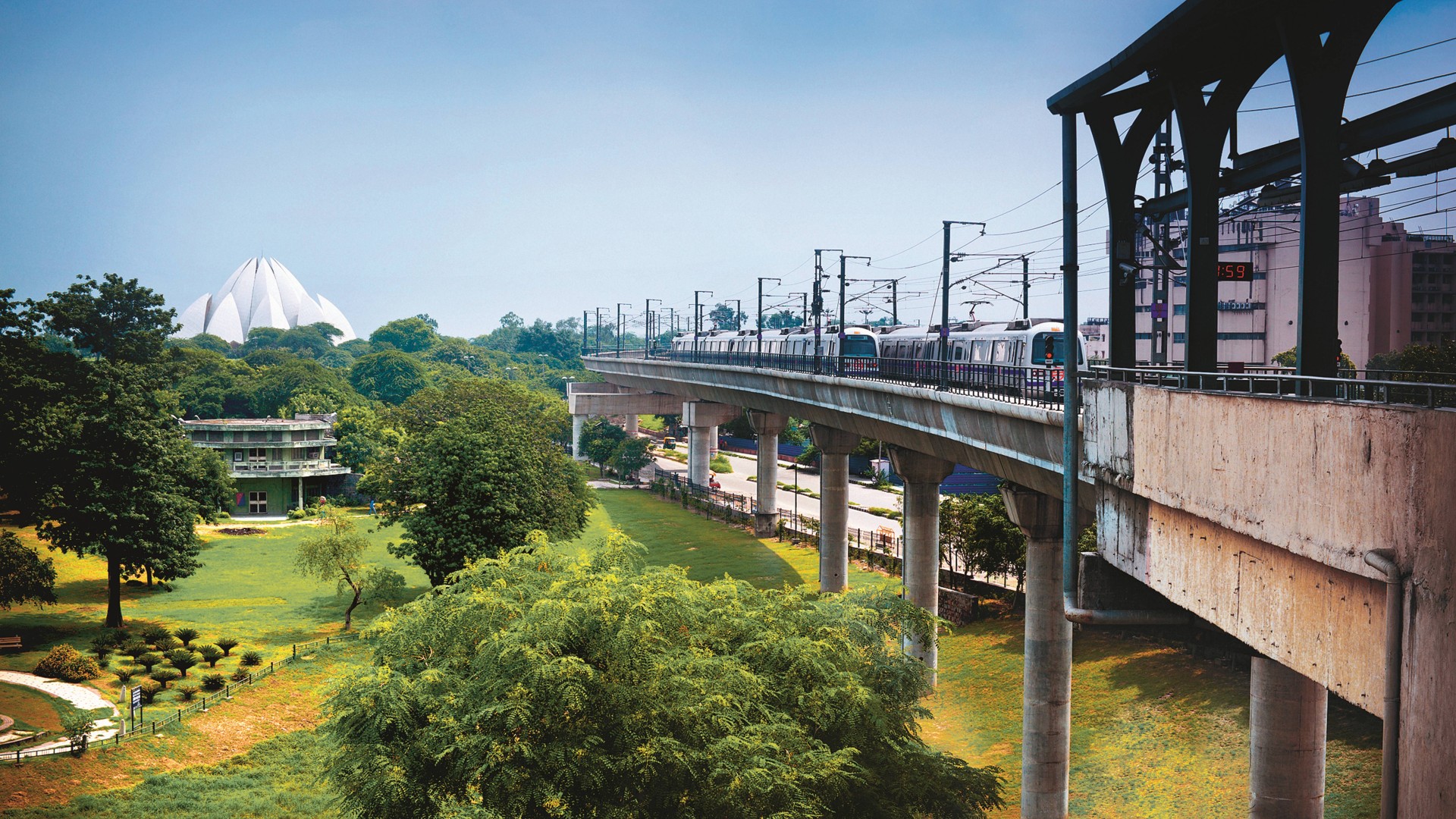 The iconic Lotus Temple in New Delhi: Thanks to the nearby metro station, this architectural landmark is easily accessible via the Delhi Metro.